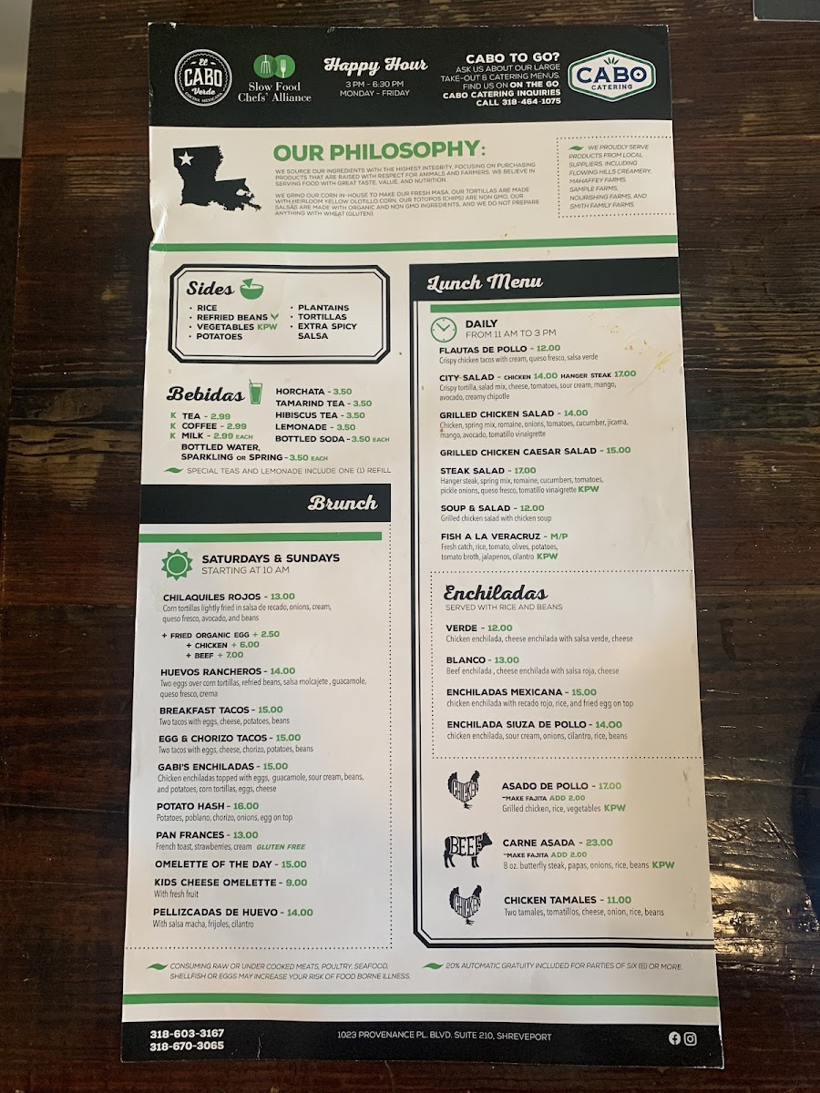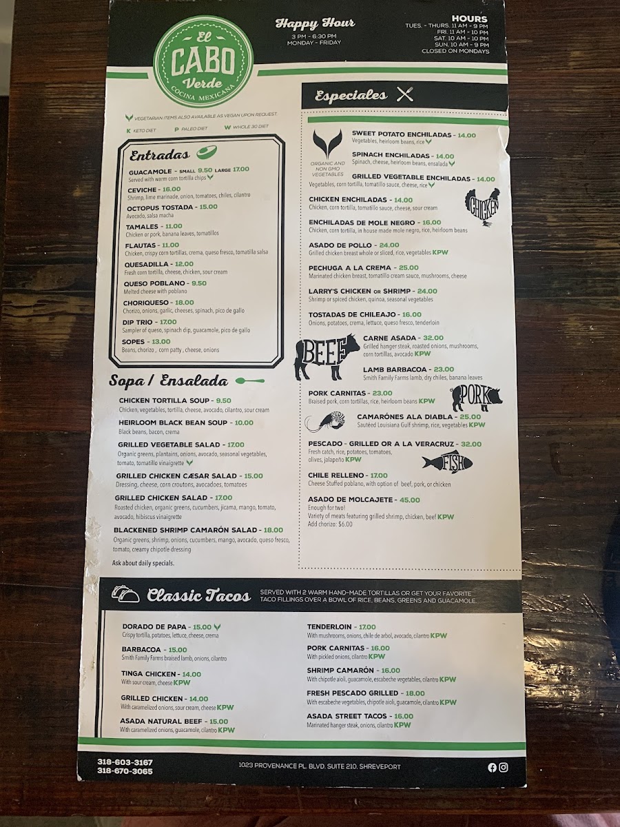 Welcome to El Cabo Verde, a culinary gem located in the heart of Shreveport, Louisiana. This exceptional restaurant combines vibrant flavors and fresh ingredients, creating dishes that promise to delight every palate. From the moment you enter, the classy and inviting atmosphere sets the stage for a memorable dining experience.